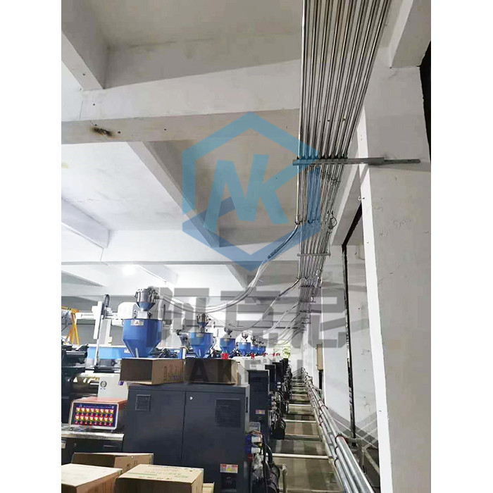 中·央供料系統、集中供料系統、統一供料系統實現原料集中處理、封閉輸送、徹底避免車間噪音、灰塵、熱氣污染。解決原料重復人工搬運的高成本及因疏忽而產生干燥不徹底的缺料問題,更不會混入不被允許的其它材料,更重要的是減少采購、耗電、維修成本,提高產品質量,提高工作效率。體現在